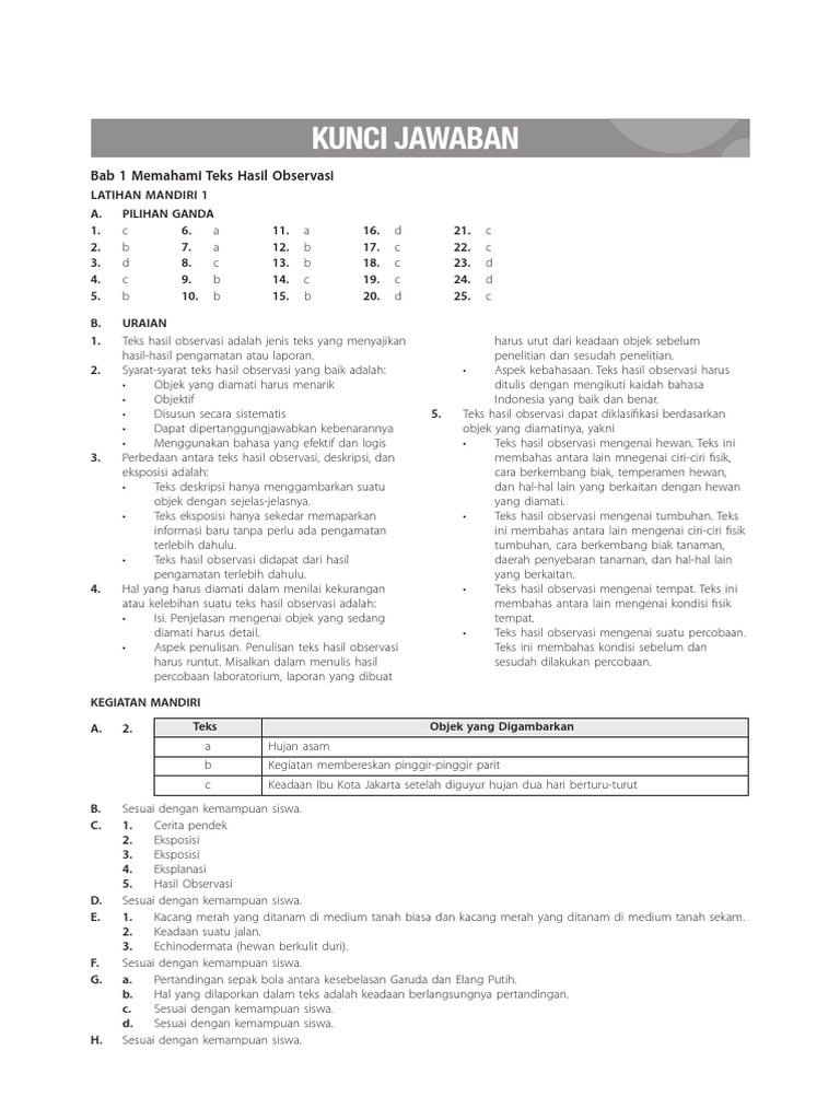 Kunci Jawaban Bahasa Indonesia Kelas 7 Pdf