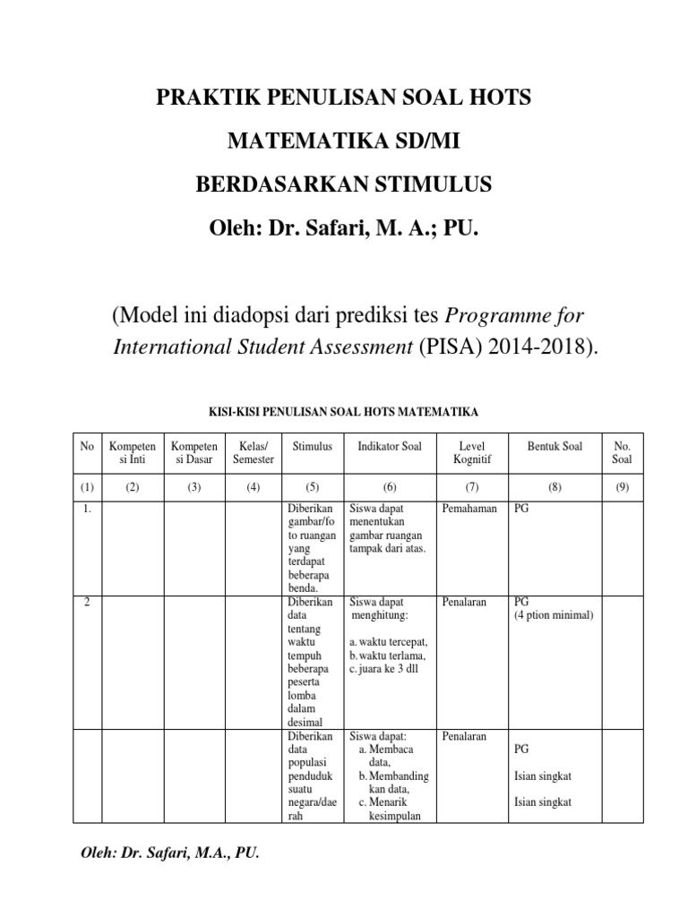 Contoh file soal uts lengkap kelas 1 6 sdmi semua mata pelajaran 20162017 berikut ini adalah kumpulan dari berbagi sumber tentang contoh soal hots matematika kelas 3 sd dan jawabannya 2019 yang bisa gunakan untuk bank soaldownloadsd dan diunduh secara gratis. Volume bangun ruang di samping. Level terendah dari versi revisi Taksonomi Bloom adalah Remember.