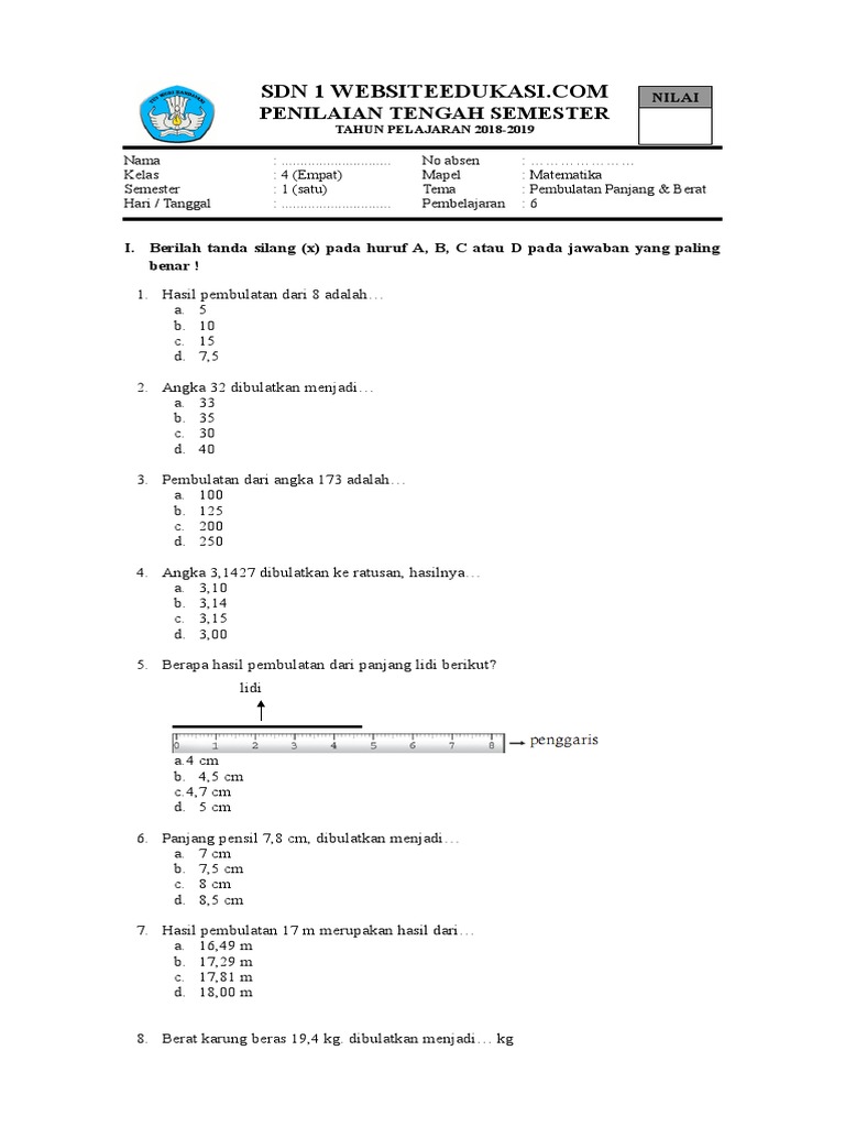 Dinas pendidikan dan kebudayaan. Soal Ulangan Matematika Kelas 5 Semester 1 K-13 - SekolahDasarNet Pin di Soal2 SD Soal Penilaian Tengah Semester 1 Matematika Kelas 5 K-13. Sebelum mengerjakan soal perlu Ananda ketahui bahwa mater.