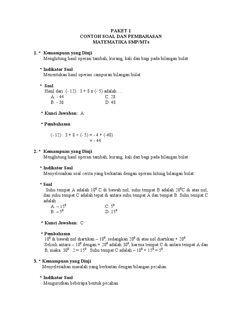 Contoh Soal Ujian Nasional 2019 Matematika Smp Mts Materi Bilangan Bulat