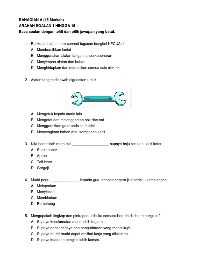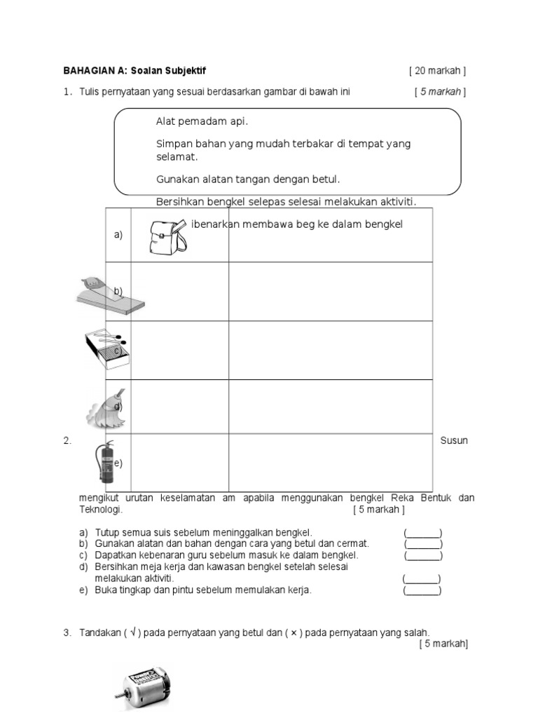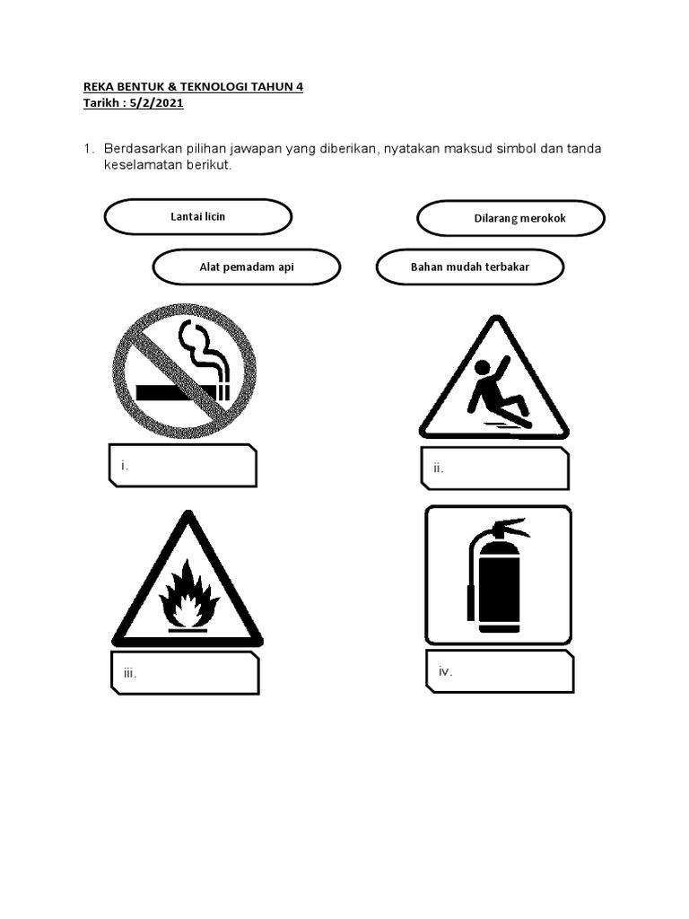 Live worksheets Malay Reka Bentuk dan Teknologi RBT Keselamatan Bengkel Latihan rbt tahun 4. Latihan rbt tahun 4 1. Melalui penggunaan ICT para guru boleh memaksimumkan penambahan perkongsian pembelajaran secara online sama ada pembelajaran secara jarak jauh atau pembelajaran kendiri.