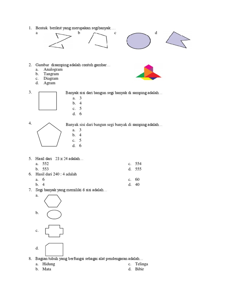 Contoh Soal Tematik Kelas 4 Tema 1 Indahnya Kebersamaan. Contoh soal untuk kelas 4 sd untuk menambah pengetahuan dan pemahaman sahabat akan materi ini. Download soal segi banyak beraturan dan tidak beraturan kelas 4 sd.