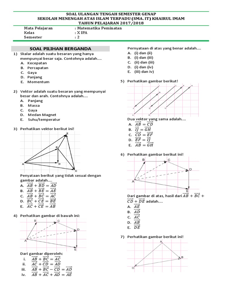Kumpulan soal vektor untuk latihan tes pat kelas x peminatan kumpulan soal vektor untuk latihan tes pat kelas x peminatan kumpulan soal persiapan ujian akhir lengkap kls 10 12 matematika wajib matematika minat fisika kimia bonus akses 2000 video dan puluhan ribu pembahasan soal media pembelajaran ini. Bagi yang membutuhkan naskah soal ujian PASUAS Matematika Wajib dan Peminatan Kelas 12 Semester 1 silahkan download soalnya pada link di bawah ini. Vektor di kelas X semester dua ini mencakup.