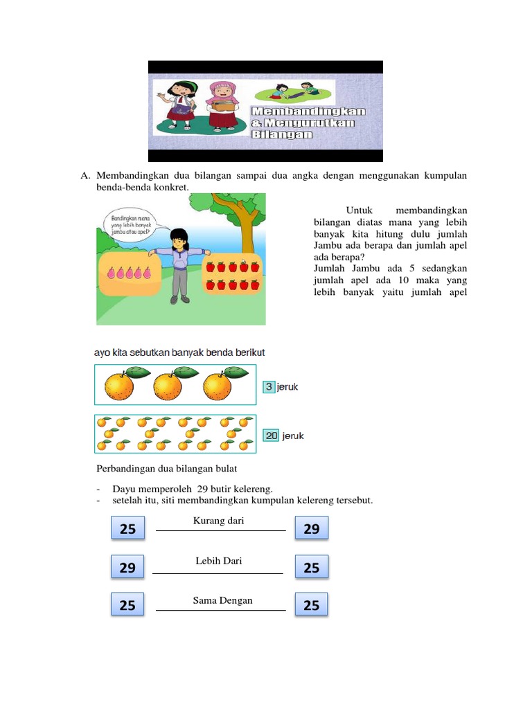 Selamat pagi rekan-rekan semua kembali kami akan sedikit berbagi tentang postingan berkenaan dengan pelajaran matematika. Yuk kita cari tahu seperti cara membandingkan dan mengurutkan benda dan bilangan. Guru meminta siswa untuk mengamati contoh langkah-langkah dalam menentukan perbandingan 55 menit.
