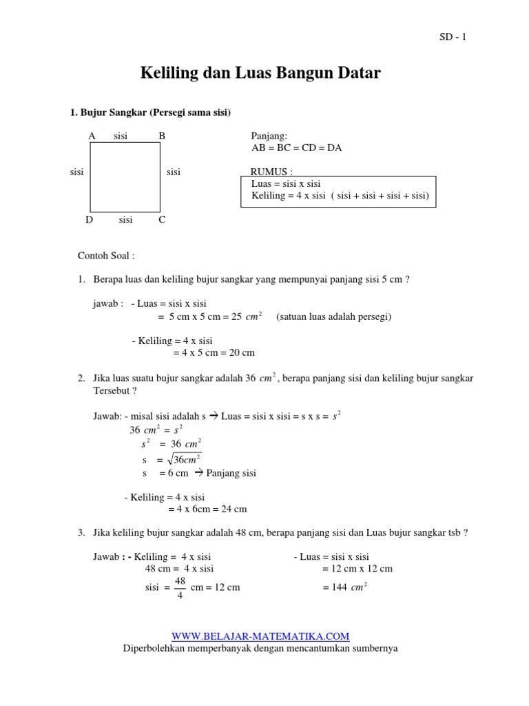 Latihan Soal Matematika Luas Bangun Datar Kls Iv Sd Jawabanku Id
