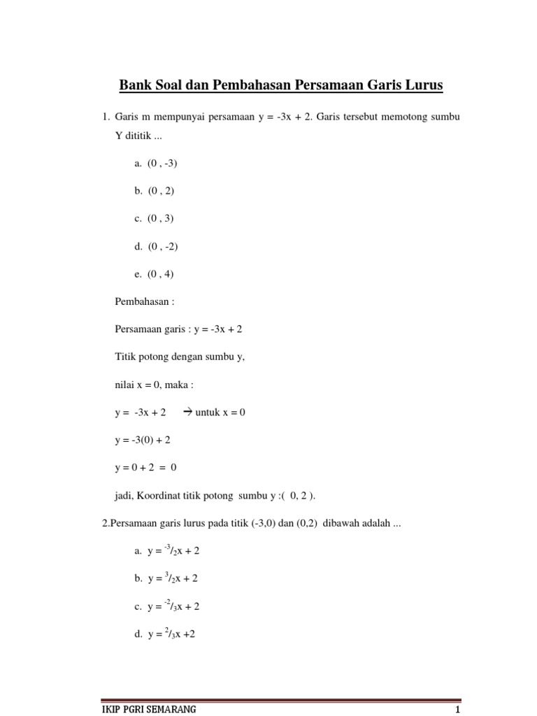 Contoh Soal Persamaan Garis Lurus Beserta Jawabannya Kelas 8 Doc Soal Dan Jawaban