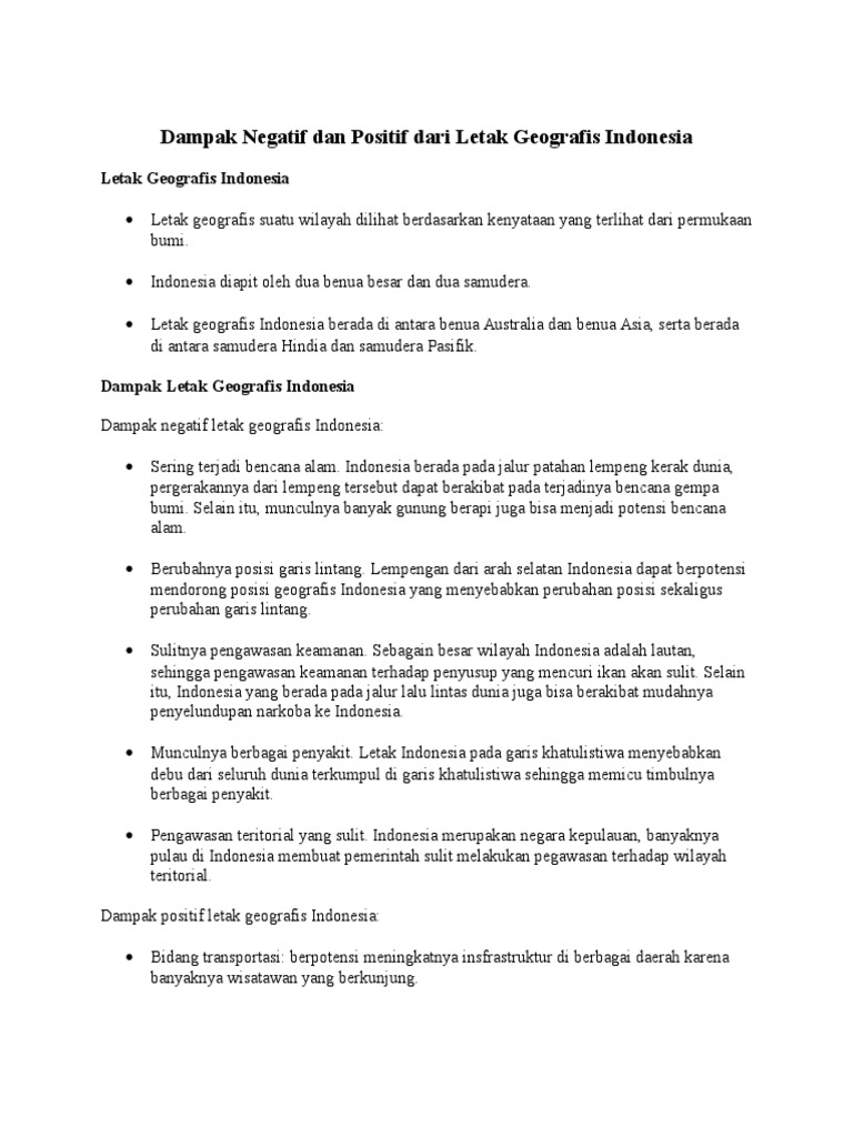 Dampak Negatif Dan Positif Dari Letak Geografis Indonesia Pdf