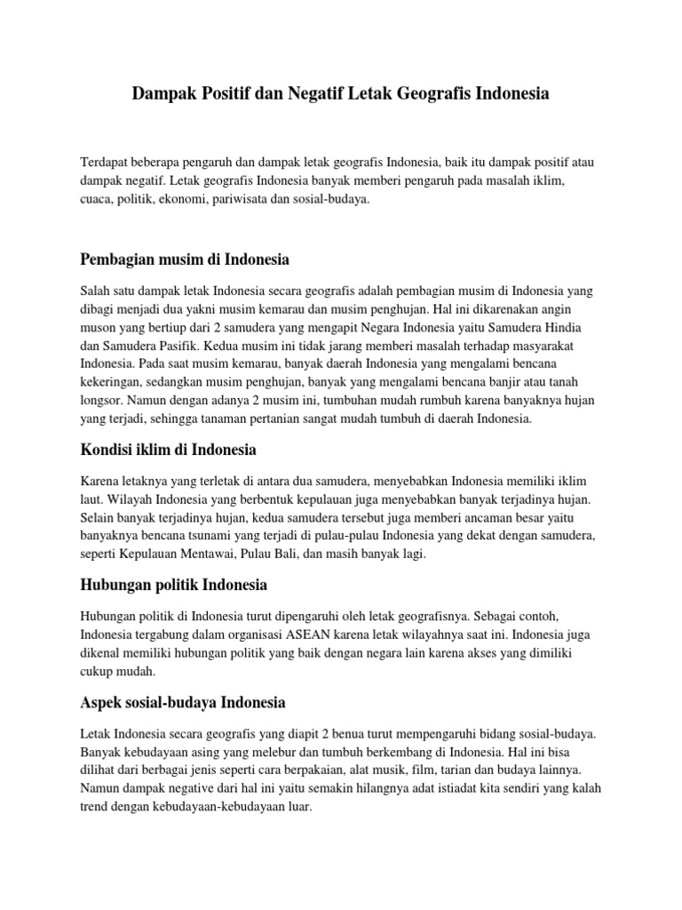 Dampak Positif Dan Negatif Letak Geografis Indonesia Pdf