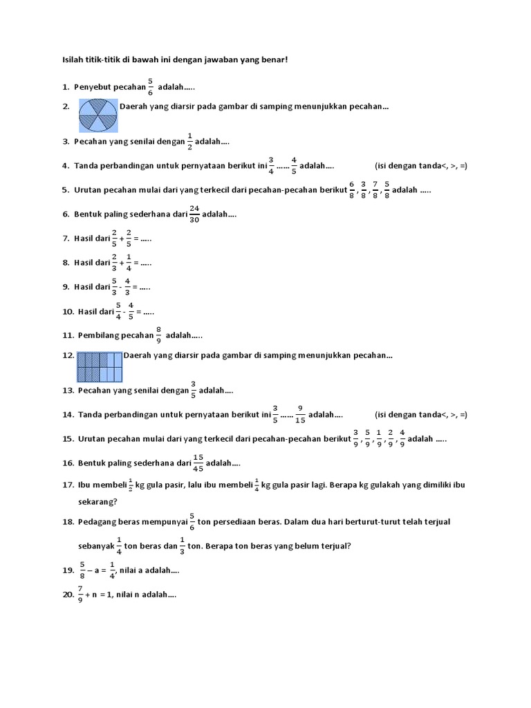 Soal Matematika Kelas 4 Semester 1 Dan Kunci Jawaban Pecahan